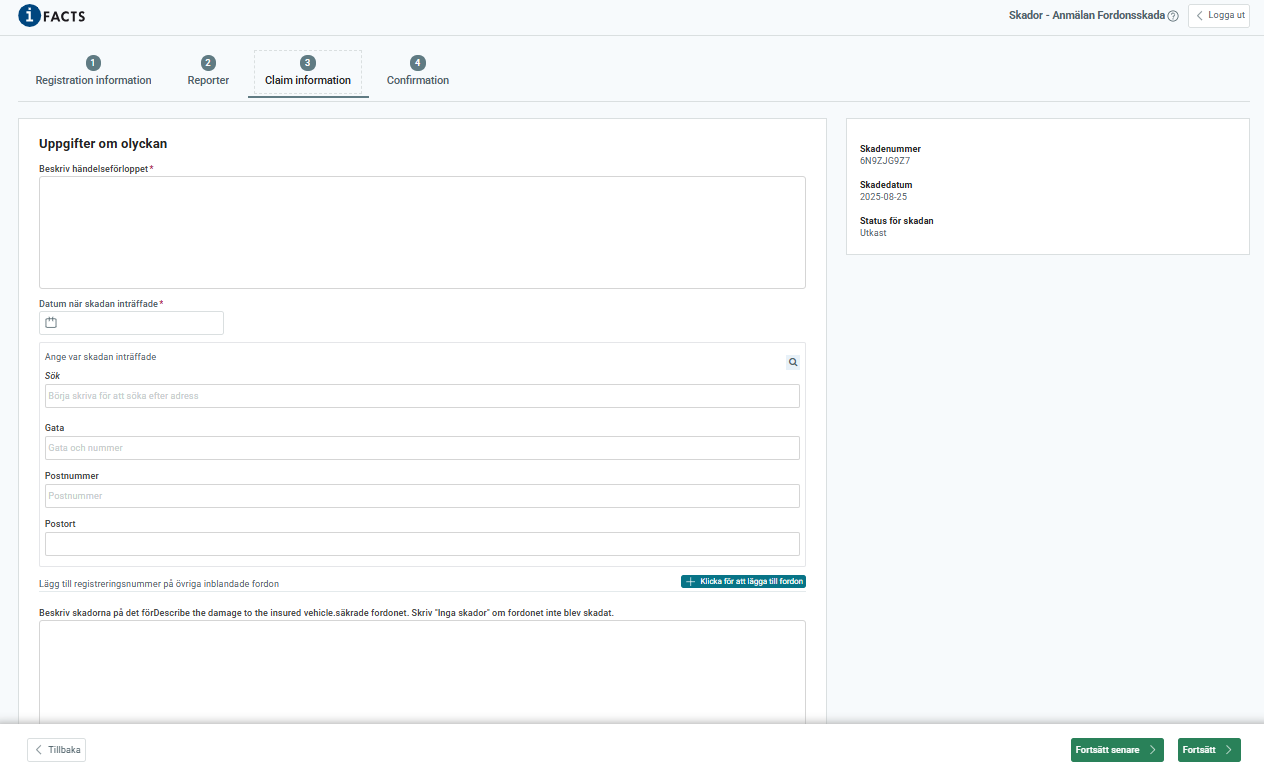 Med inbyggda valideringar, minskar risken för felaktig eller ofullständig information från den skadelidande.