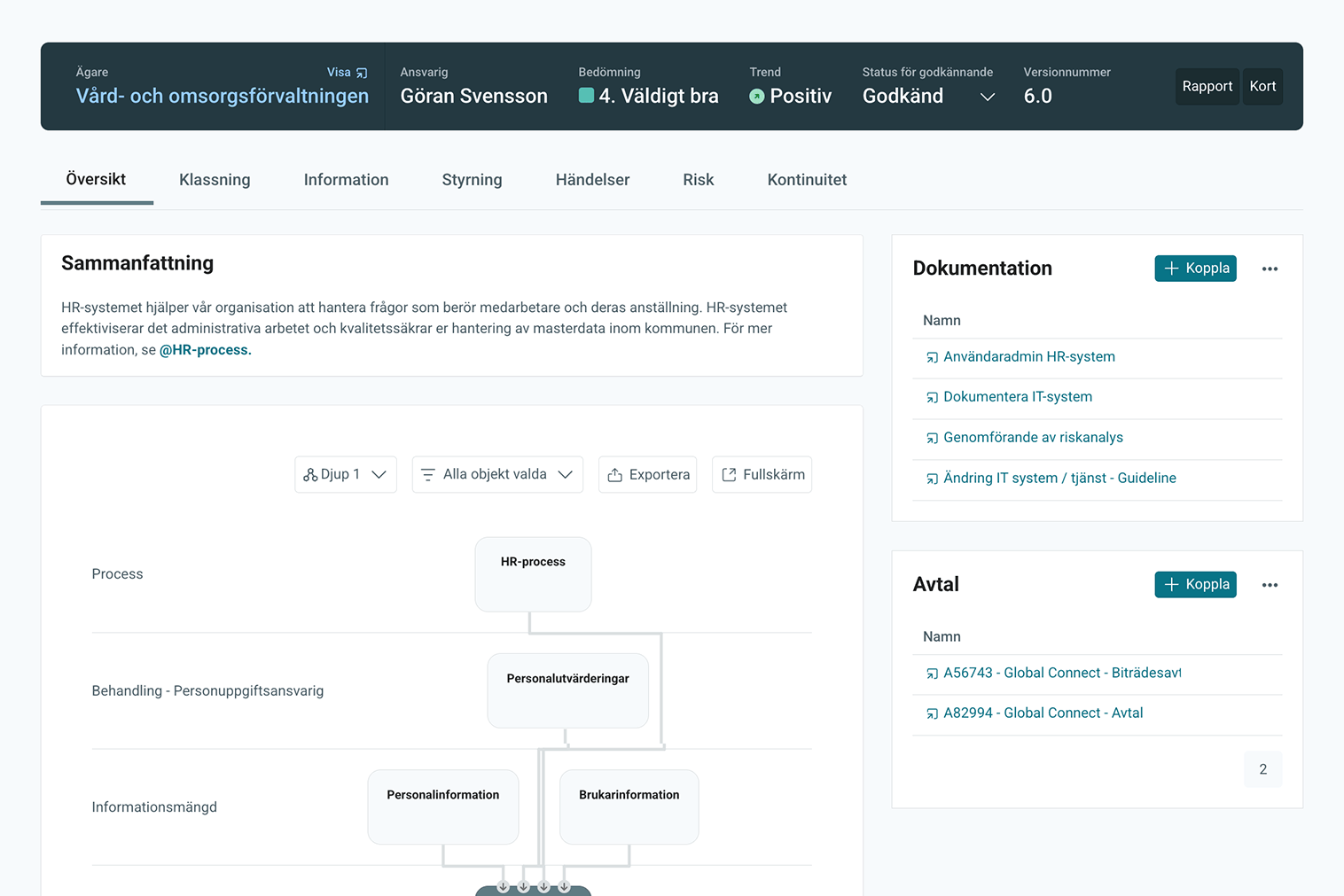 - Dokumentation inklusive klassificering av information och tillgångar